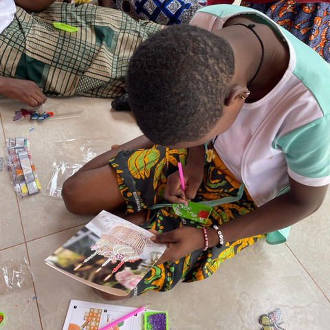 Maar in mijn valies stak iets nieuws: diamond painting. Bij ons een groot succes en blijkbaar ook bij de meisjes in Bobo. De gekochte kaartjes en sleutelhangers werden direct bekleefd met de glinsterende steentjes. Wat een trots. Wat een plezier.