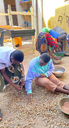 De kinderen pellen de nootjes heel zorgvuldig en gooien de nootjes Ʃn de pel in de tweede kom. Wat een monnikenwerk. Ik neem een stoel en zet me erbij. Zo kan ik een babbeltje doen met de kinderen en ze zo beter leren kennen.